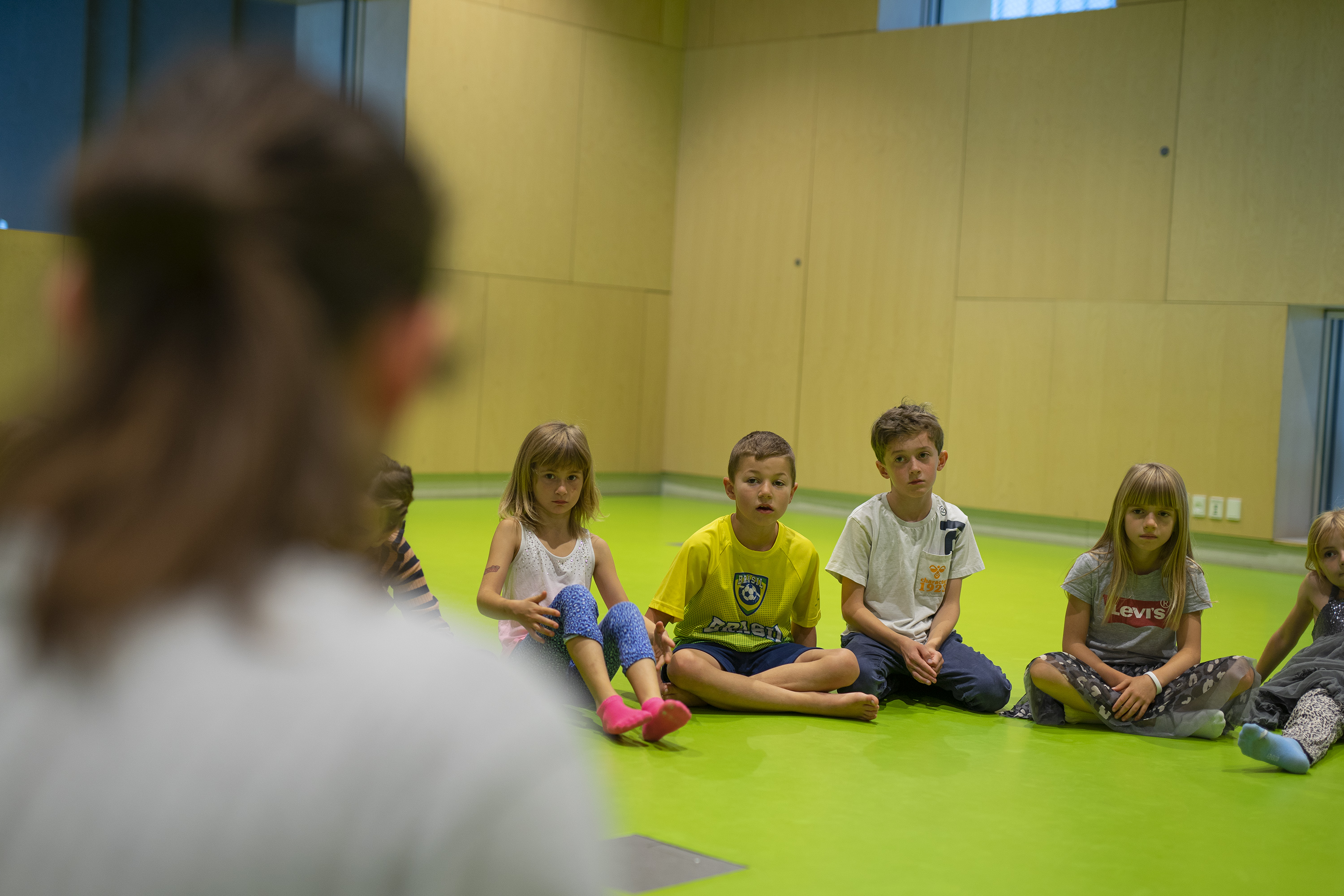 På anden workshop blev børnene præsenteret for den færdige dans. Derefter gennemgik Martin hver enkelt bevægelse med børnene, og dansen blev sat sammen og øvet trin for trin.